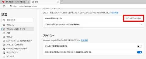 「閲覧データをクリア」の「今すぐ閲覧データをクリア」右側にある「クリアするデータの選択」をクリックします。