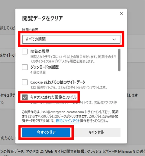 「今すぐクリア」をクリックします。