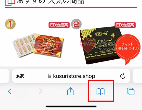 Safariを開きブックマークボタン(本のアイコン)をタップします。